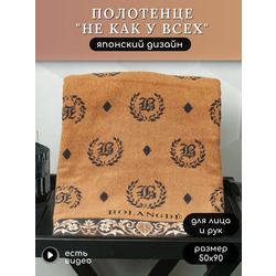 BOLANGDE Полотенце для ванной махровое, для лица и рук, велюровое, 100% хлопок, Япония Лого 50х90, коричневый 1 шт