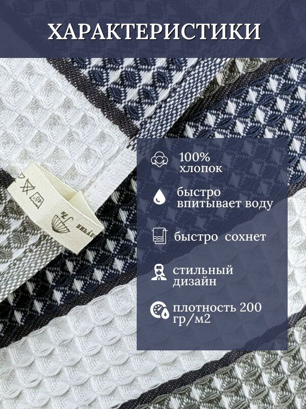 Крутая фишка от фабрики 7Я Текстиль - вафельное с крупными ячейками мягкое полотенца из 100% хлопка.