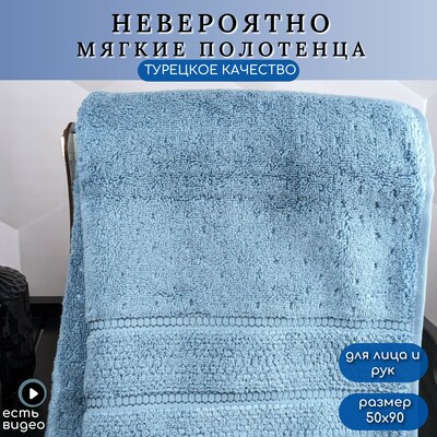 Впитывающее хлопковое полотенце 50 на 90 удобно для использования в ванной комнате, для сауны и для душа.