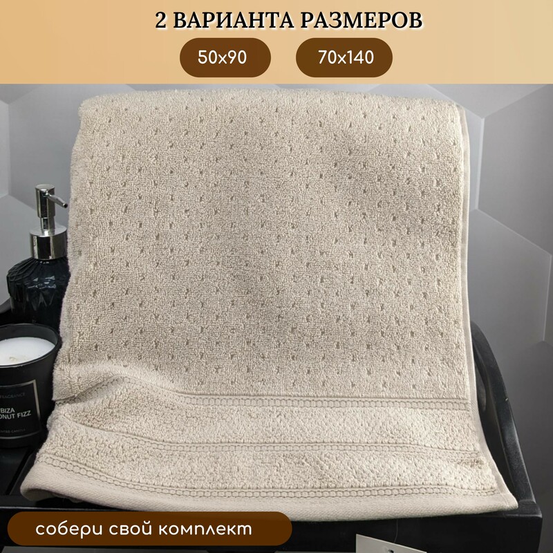 Впитывающее хлопковое полотенце 50 на 90 удобно для использования в ванной комнате, для сауны и для душа.