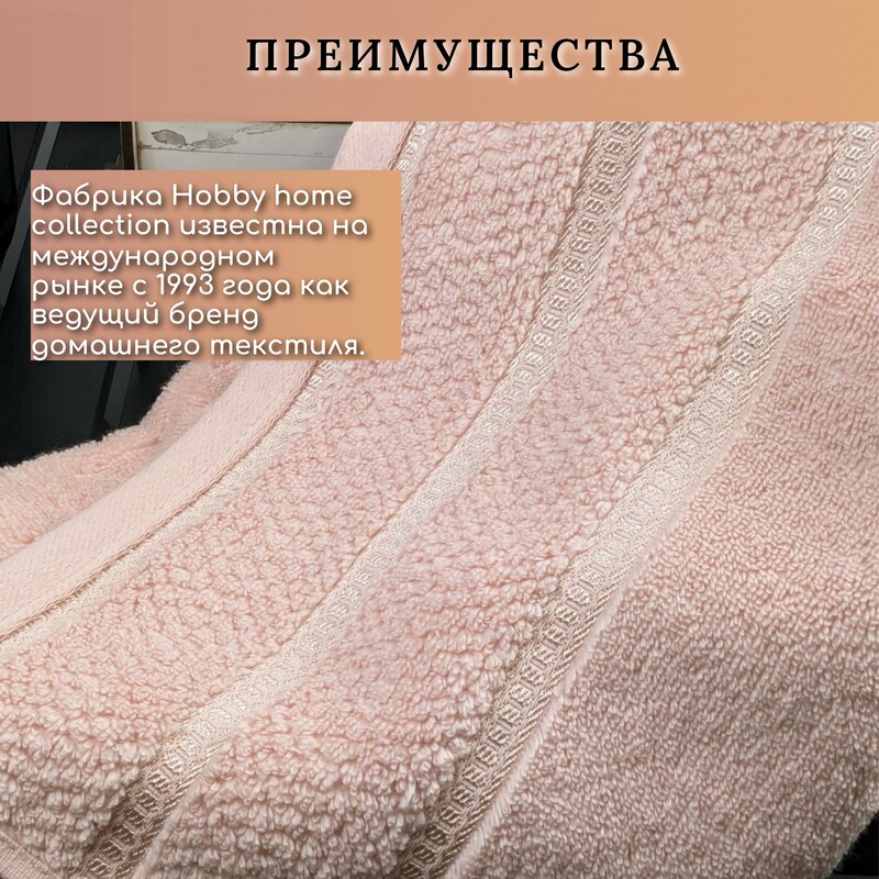 Полотенце махровое 50х90 HOBBY HOME, Arella в цвете пудра - это турецкое полотенце для лица и рук, выполненное из элитного материала - микрокоттона.