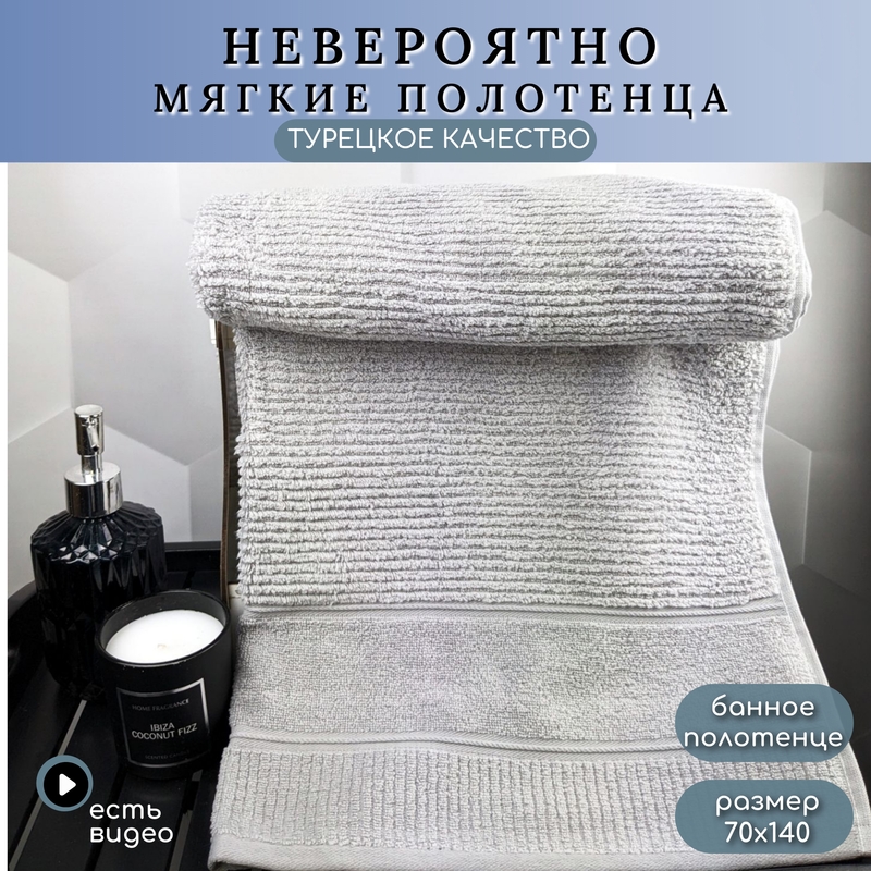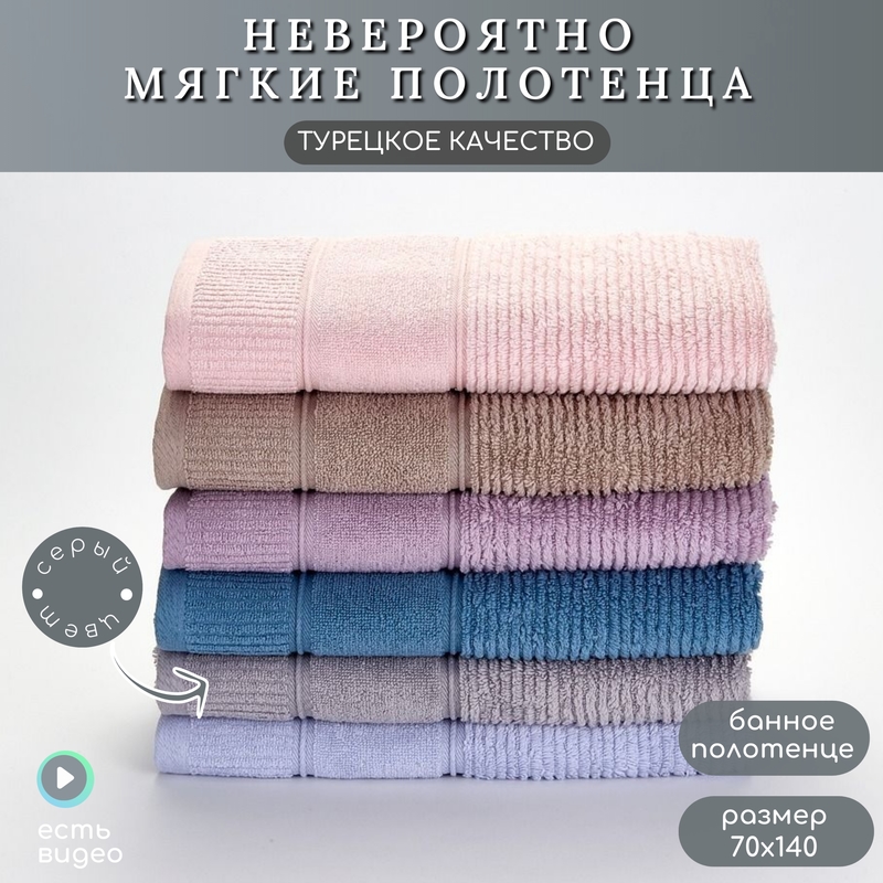 Впитывающее хлопковое полотенце 70 на 140 удобно для использования в ванной комнате, для сауны и для душа.