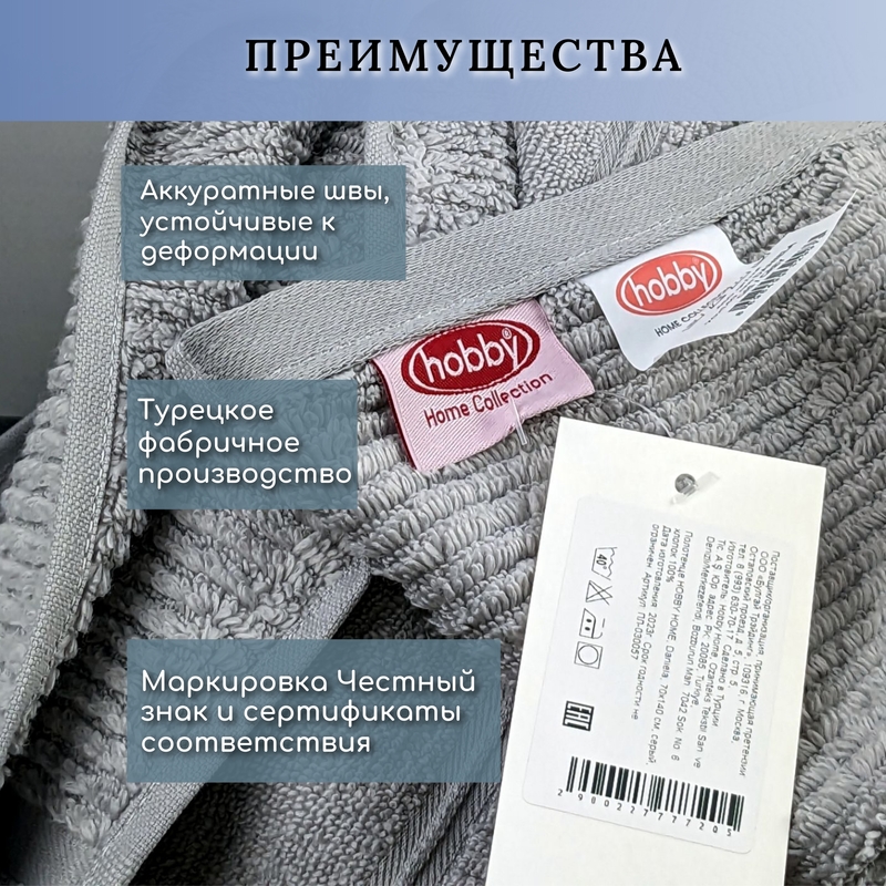 Полотенце махровое 70х140 HOBBY HOME, Daniela в цвете серый - это турецкое банное полотенце, выполненное из элитного материала - микрокоттона.