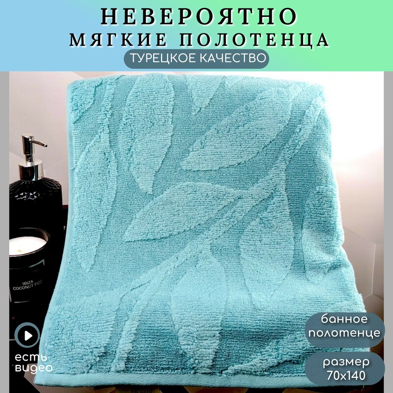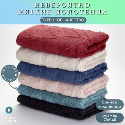 Впитывающее хлопковое полотенце 70 на 140 удобно для использования в ванной комнате, для сауны и для душа.