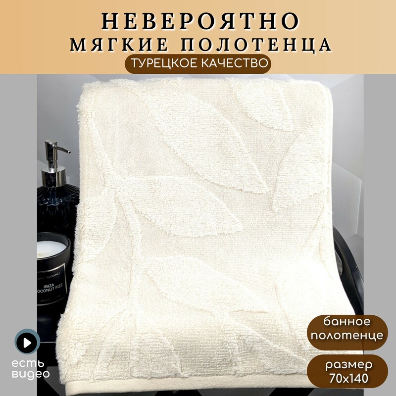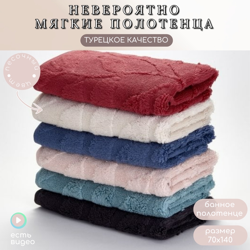 Впитывающее хлопковое полотенце 70 на 140 удобно для использования в ванной комнате, для сауны и для душа.