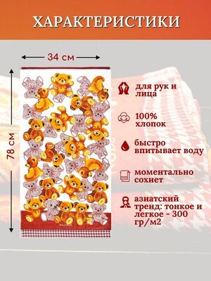 Отзывы - BOLANGDE Полотенце для рук и лица 1 шт, полотенце для ванной махровое, велюровое, 100% хлопок, рисунок цветы, Япония Мишутки 34х78, бордово-коричневыйОставить отзыв