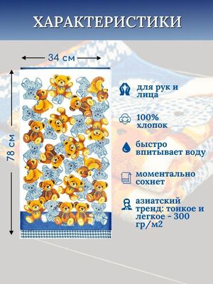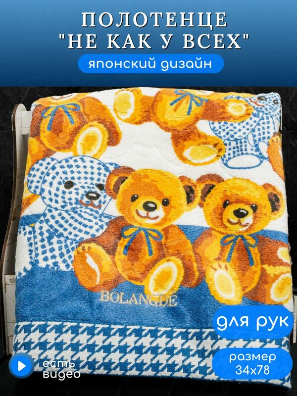 Отзывы - BOLANGDE Полотенце для рук и лица 1 шт, полотенце для ванной махровое, велюровое, 100% хлопок, рисунок цветы, Япония Мишутки 34х78, синийОставить отзыв