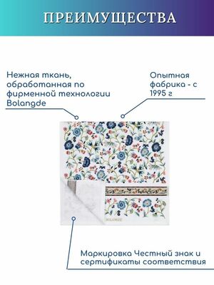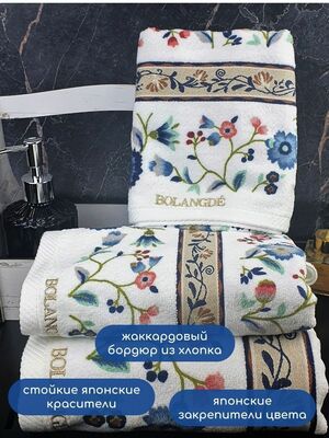 "Одна из новых моделей полотенец BOLANGDE Япония Васильки 2021, пожалуй, самая нежная расцветка коллекции. Уникальные полотенца BOLANGDE от японской фабрики KUSUBASHI с запатентованным дизайном. Это значит, что такой рисунок не могут использовать другие бренды, а вы покупаете неповторимую оригинальную вещь. Коллекция махрово-велюровых полотенец для ванной ЯПОНИЯ торговой марки Bolangde (Боландже) произведена на японском оборудовании из 100% высококачественного хлопка с применением особо стойких японских красителей и закрепителей цвета, что позволяет использовать в одном изделии множество ярких цветов. Махрово-велюровое полотенце произведено на японском оборудовании. Внутренняя сторона - махра. Внешняя сторона - стриженная махра. В коллекции с цветами и Мишками принтованная только внешняя сторона, внутренняя - гладкий белый хлопок. При производстве используются все последние Японские технологии, только натуральный хлопок и безвредные красители 4го уровня безопасности. Материал полотенец произведен из высококачественного хлопка, который проходит несколько стадий обработки по удалению мелких волокон, что позволяет получить мягкий и нежный ворс. Японские технологии дали возможность совместить пестротканое плетение, велюр, усиленную обшивку (оверлок), что позволяет им не расползаться и сохранить прекрасный внешний вид.. Подобная технология производстсва позволяет получить: - мягкие и комфортные к телу полотенца, - прочную ткань, которая выдерживает многочисленные стирки - стойкий цвет. - полотенца хорошо впитывают воду и при этом быстро сохнут. Каждая модель есть в четырех размерах, чтобы каждый мог выбрать полотенца согласно своим привычкам: полотенце 34х75 полотенце 50х90 полотенце 70х140 полотенце 100х150 Уже более ста лет, фабрика KUSUBASHI обеспечивает потребности трех поколений императорского двора Японии. Это существенный повод доверять качеству данной фабрики. "