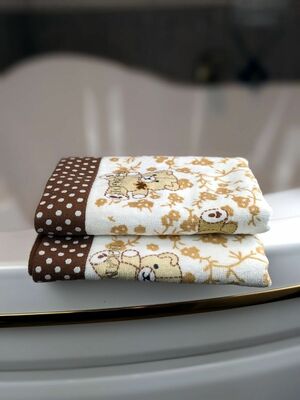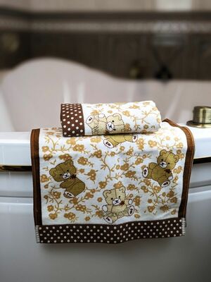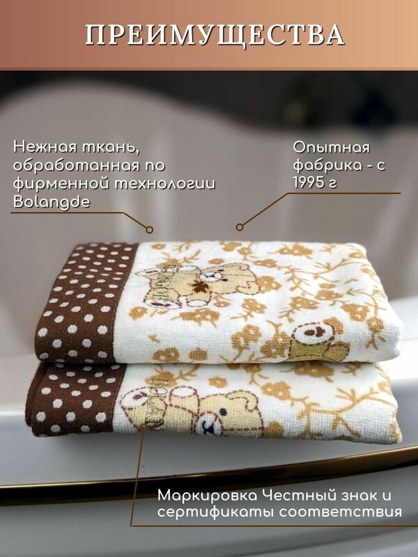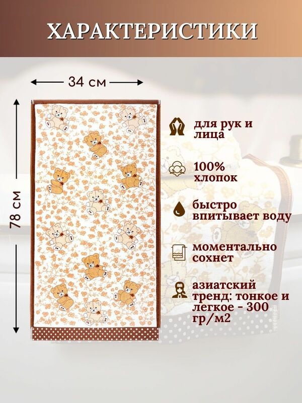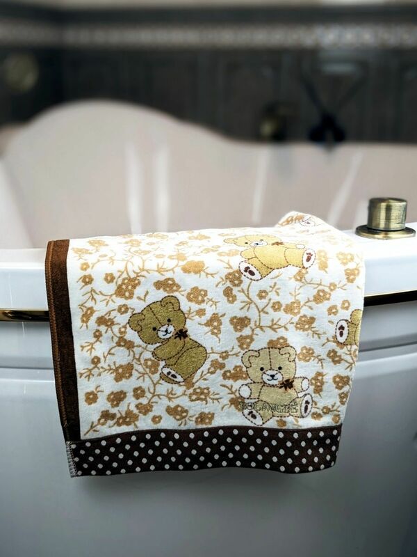 BOLANGDE Полотенце для рук и лица 1 шт, полотенце для ванной махровое, велюровое, 100% хлопок, Япония Мишки 2078А-34х78, белый/бежевый