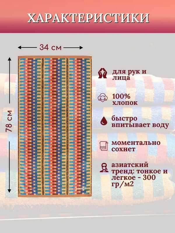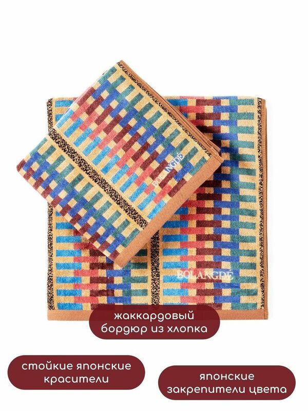 "Полотенца для ванной BOLANGDE Япония Клетка 3003 - яркая расцветка в геометричном стиле, которая подойдет для стильных и современных интерьеров. Уникальные полотенца BOLANGDE от японской фабрики KUSUBASHI Mon-OriCo с запатентованным дизайном - с одной стороны махровые и велюровые с другой. Полотенца выпускались и выпускаются на производственных мощностях KUSUBASHI Mon-OriCo под полным контролем и японского менеджмента, территориально завод размещен на территории КНР. Эти полотенца не относятся к разряду ""мохнатых"" махровых полотенец. Bolangde - особый продукт. Японские технологии позволили сделать полотенце тонким, крависым и долговечным, а отборный хлопок приятным и нежным. Все дизайны и технологии запатентованы фабрикой. Это значит, что такой рисунок не могут использовать другие бренды, а вы покупаете неповторимую оригинальную вещь. Коллекция махрово-велюровых полотенец ЯПОНИЯ торговой марки Bolangde (Боландже) произведена на японском оборудовании из 100% высококачественного хлопка с применением особо стойких японских красителей и закрепителей цвета, что позволяет использовать в одном изделии множество ярких цветов. Внутренняя сторона - махровая. Внешняя сторона - стриженная махра. В коллекции с цветами принтованная только внешняя сторона, внутренняя - гладкий белый хлопок. В геометричных рисунках и модели Арабеска обе стороны с рисунком, т.к. производятся путем жаккардового плетения уже готовых прокрашенных нитей. При производстве используются все последние Японские технологии, только натуральный хлопок и безвредные красители 4го уровня безопасности. Материал полотенец произведен из высококачественного хлопка, который проходит несколько стадий обработки по удалению мелких волокон, что позволяет получить мягкий и нежный ворс. Японские технологии дали возможность совместить пестротканое плетение, велюр, усиленную обшивку (оверлок), что позволяет им не расползаться и сохранить прекрасный внешний вид. Подобная технология производства позволяет получить: - мягкие и комфортные к телу полотенца; - прочную ткань, которая выдерживает многочисленные стирки; - стойкий цвет; - полотенца хорошо впитывают воду и при этом быстро сохнут. Каждая модель есть в четырех размерах, чтобы каждый мог выбрать полотенца согласно своим привычкам: · полотенца большие банные есть в двух размерах 70х140 и 100х150, чем может похвастаться не каждый бренд. Удобно использовать для ванной, для сауны и бани, а также как пляжное. · полотенце для лица махровое 50х90 · полотенце для рук, для ног 34х78 в наборе 2 шт. · идеально выглядит набор полотенец. Обычно покупают одно из банных и лицевое, или банное и для рук. Уже более ста лет, фабрика KUSUBASHI обеспечивает потребности трех поколений императорского двора Японии. Это существенный повод доверять качеству данной фабрики. Полотенца Bolangde с цветочным рисунком - прекрасные подарки женщинам: бабушке, девушке, подарок маме, учителю, воспитателю."""