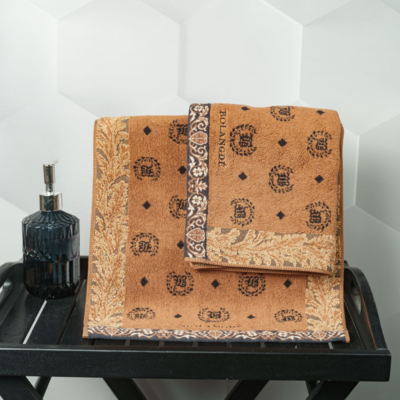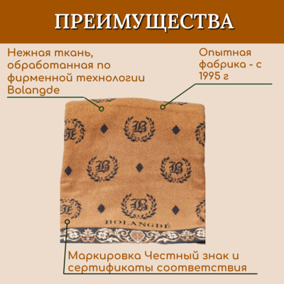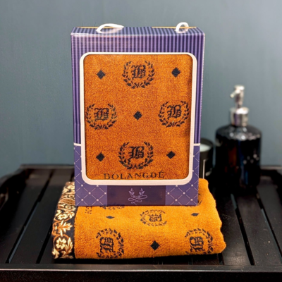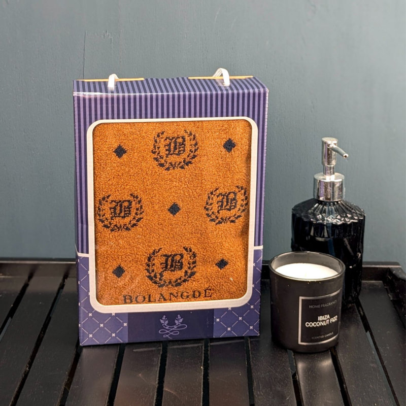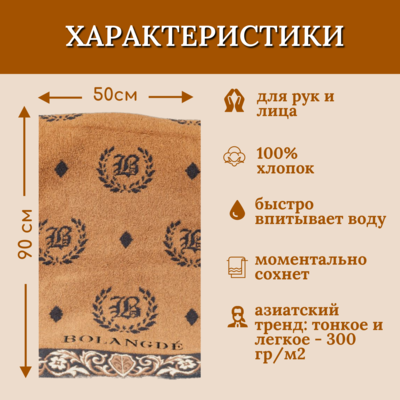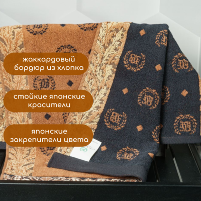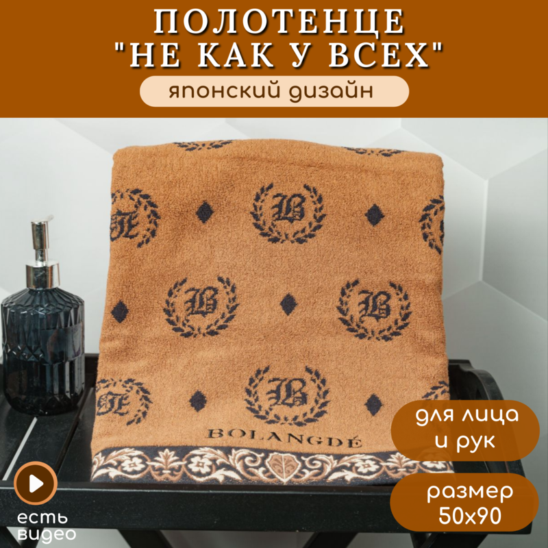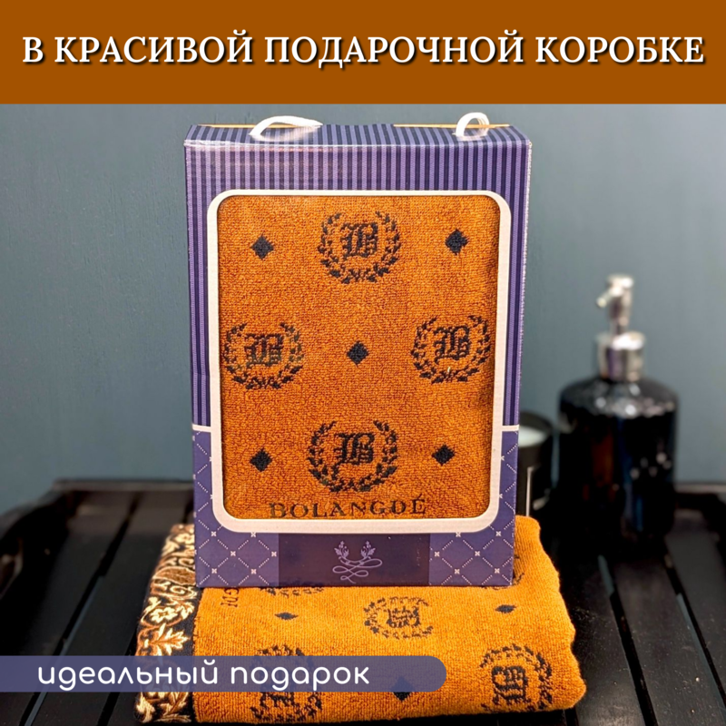BOLANGDE Подарочное полотенце в коробке BOLANGDE Япония Лого 50х90 для ванной махровое велюровое, для лица и рук, 100% хлопок, коричневый 1 шт