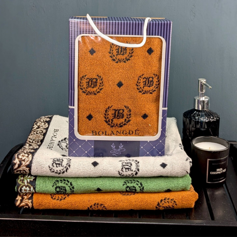 Полотенце жаккардовое махровое для лица и рук в ванную 50-90 BOLANGDE Япония Лого 3027- роскошная модель с узорами, которая подойдет как для классического интерьера, так и для современного. Уникальные полотенца махровые BOLANGDE от японской фабрики KUSUBASHI Mon-OriCo с запатентованным дизайном. Ванное полотенце мужское 50 на 90 с геометричным рисунком выпускалось и выпускается на производственных мощностях KUSUBASHI Mon-OriCo под полным контролем и японского менеджмента, территориально завод размещен на территории КНР. Технология производства таких японских полотенец с орнаментом для лица и рук 50х90 подразумевает со стороны рисунка поверхностный обжиг огнем верхней кромки волокон для равномерной длины ворса и мягкости кончиков. Они не относятся к разряду "мохнатых" махровых лицевых полотенец. Bolangde - особый продукт. Японские технологии позволили сделать полотенце с принтом тонким, красивым и долговечным, а отборный хлопок приятным и нежным. Все дизайны и технологии запатентованы фабрикой. Это значит, что такой рисунок не могут использовать другие бренды, а вы покупаете неповторимый оригинальный подарок для любимого. Коллекция махрово-велюровых полотенец япония торговой марки Bolangde (Боландже) произведена на японском оборудовании на их китайской фабрике из 100% высококачественного хлопка с применением особо стойких японских красителей и закрепителей цвета, что позволяет использовать в одном изделии множество ярких цветов. Такое универсальное полотенце идеально подходит для лица, волос, для рук, ног после купания в душе, в бассейне, в бане. Мягкое натуральное полотенце выполнено из гипоаллергенной ткани. Если вы ищете подарки для мужчин полотенца, то универсальный банный, дачный, домашний красивый аксессуар японское полотенце мужское оценят самые требовательные мужчины. Оригинальный мужской подарок для папы брата мужа и любимого. Эти хлопковые полотенца для рук и лица пригодятся вам в путешествии, на даче, дома. Японское тонкое впитывающее полотно полотенце из натурального материала подходит для обтирания лица как после занятий и тренировок в спортзале, так и для пляжа. А также будут рады такому подарку на 23 февраля муж, папа, дедушка. Не знаете, что подарить родителям на юбилей свадьбы или коллеге на день рождения? Скоро день влюбленных или праздник у лучшего друга? Текстиль станет не только запоминающимся подарком, но и практичным. Приятный на ощупь материал полотенца создаст уют в любом интерьере. Этот набор покорит мужские сердца. А также раскрасит обычные будни в яркие краски! Товары нашего производства станут любимыми в каждой семье. Перед первым применением изделие рекомендуется постирать в стиральной машине. Даже после многократной стирки цвет изделия остается таким же ярким. Полотенца стирают при оптимальной температуре воды не выше 40 градусов и гладят при низкой температуре - до 110 градусов. У нас есть акции и распродажи, вы можете купить наши товары в подарок со скидкой!