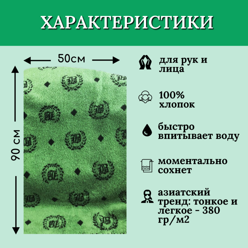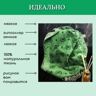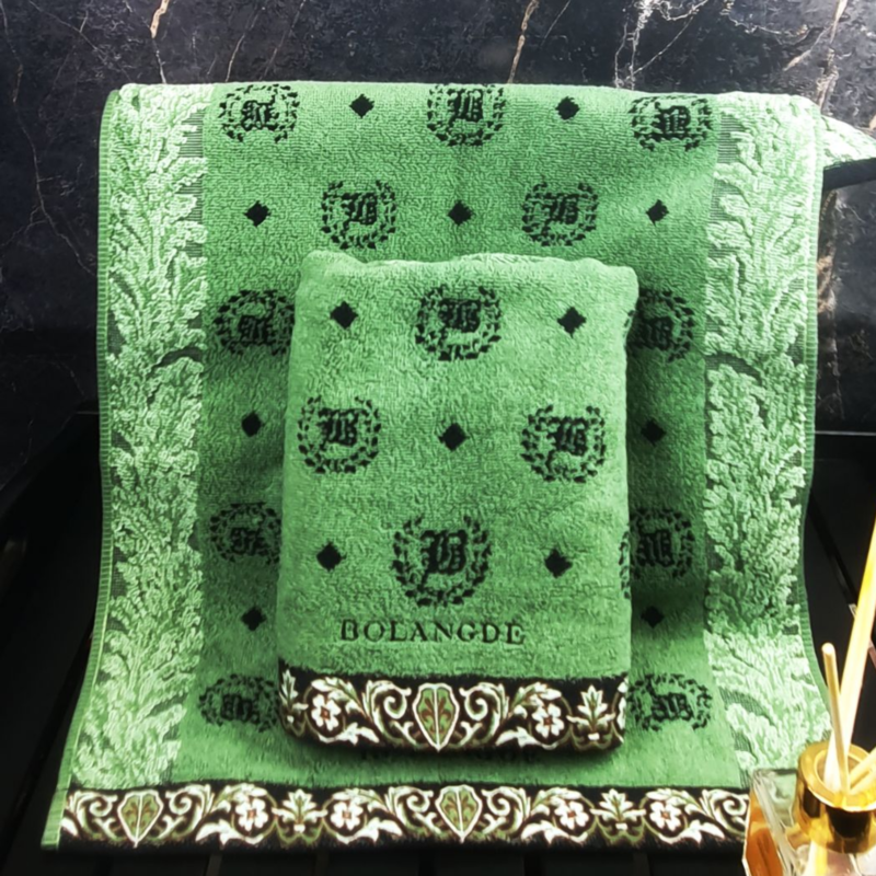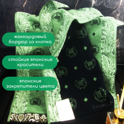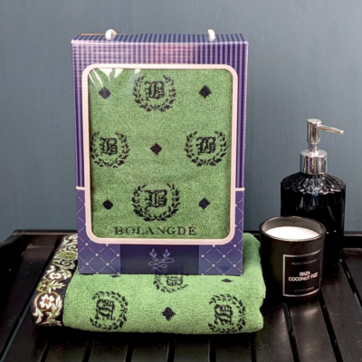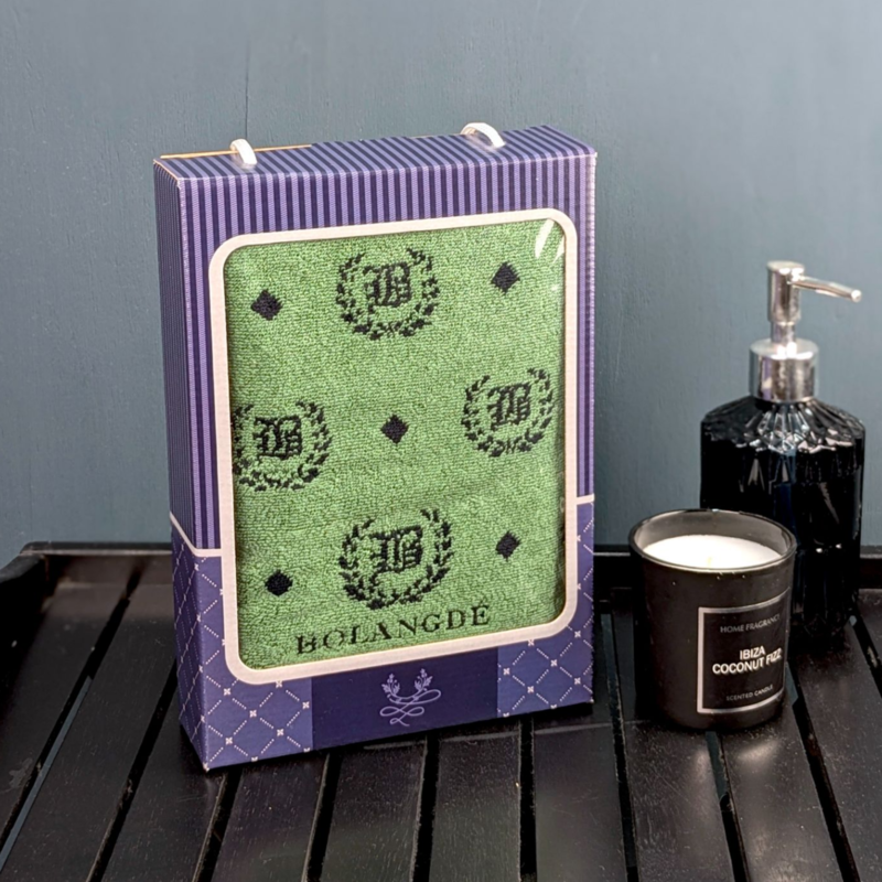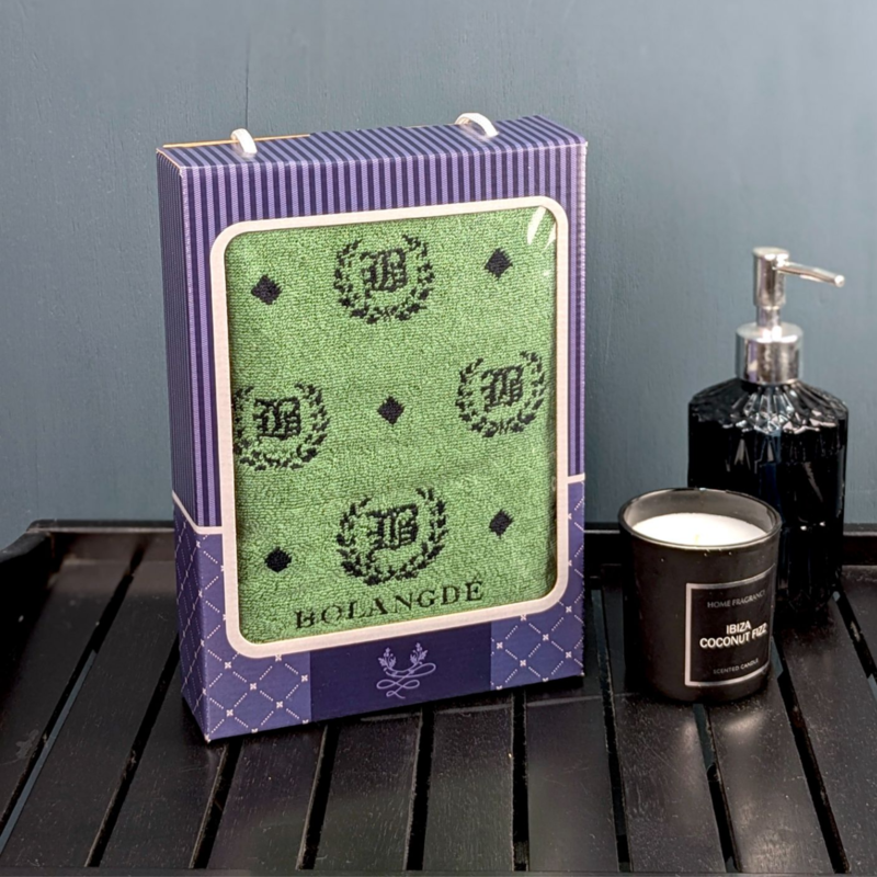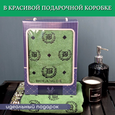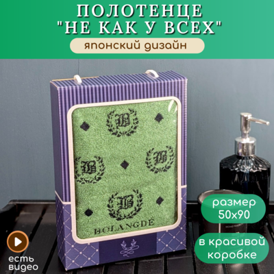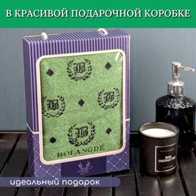 BOLANGDE Подарочное полотенце в коробке BOLANGDE Япония Лого 50х90 для ванной махровое велюровое, для лица и рук, 100% хлопок, зеленый 1 шт