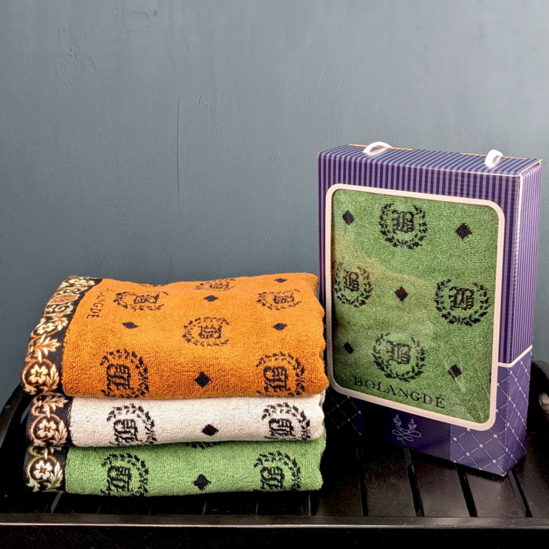 Полотенце жаккардовое махровое для лица и рук в ванную 50-90 BOLANGDE Япония Лого 3027- роскошная модель с узорами, которая подойдет как для классического интерьера, так и для современного. Уникальные полотенца махровые BOLANGDE от японской фабрики KUSUBASHI Mon-OriCo с запатентованным дизайном. Ванное полотенце мужское 50 на 90 с геометричным рисунком выпускалось и выпускается на производственных мощностях KUSUBASHI Mon-OriCo под полным контролем и японского менеджмента, территориально завод размещен на территории КНР. Технология производства таких японских полотенец с орнаментом для лица и рук 50х90 подразумевает со стороны рисунка поверхностный обжиг огнем верхней кромки волокон для равномерной длины ворса и мягкости кончиков. Они не относятся к разряду "мохнатых" махровых лицевых полотенец. Bolangde - особый продукт. Японские технологии позволили сделать полотенце с принтом тонким, красивым и долговечным, а отборный хлопок приятным и нежным. Все дизайны и технологии запатентованы фабрикой. Это значит, что такой рисунок не могут использовать другие бренды, а вы покупаете неповторимый оригинальный подарок для любимого. Коллекция махрово-велюровых полотенец япония торговой марки Bolangde (Боландже) произведена на японском оборудовании на их китайской фабрике из 100% высококачественного хлопка с применением особо стойких японских красителей и закрепителей цвета, что позволяет использовать в одном изделии множество ярких цветов. Такое универсальное полотенце идеально подходит для лица, волос, для рук, ног после купания в душе, в бассейне, в бане. Мягкое натуральное полотенце выполнено из гипоаллергенной ткани. Если вы ищете подарки для мужчин полотенца, то универсальный банный, дачный, домашний красивый аксессуар японское полотенце мужское оценят самые требовательные мужчины. Оригинальный мужской подарок для папы брата мужа и любимого. Эти хлопковые полотенца для рук и лица пригодятся вам в путешествии, на даче, дома. Японское тонкое впитывающее полотно полотенце из натурального материала подходит для обтирания лица как после занятий и тренировок в спортзале, так и для пляжа. А также будут рады такому подарку на 23 февраля муж, папа, дедушка. Не знаете, что подарить родителям на юбилей свадьбы или коллеге на день рождения? Скоро день влюбленных или праздник у лучшего друга? Текстиль станет не только запоминающимся подарком, но и практичным. Приятный на ощупь материал полотенца создаст уют в любом интерьере. Этот набор покорит мужские сердца. А также раскрасит обычные будни в яркие краски! Товары нашего производства станут любимыми в каждой семье. Перед первым применением изделие рекомендуется постирать в стиральной машине. Даже после многократной стирки цвет изделия остается таким же ярким. Полотенца стирают при оптимальной температуре воды не выше 40 градусов и гладят при низкой температуре - до 110 градусов. У нас есть акции и распродажи, вы можете купить наши товары в подарок со скидкой!