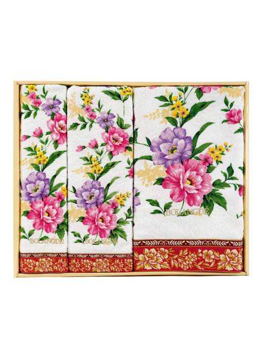 Подарочный набор полотенец BOLANGDE состоит из трех полотенец 70х140, 50х90 и 34х78. Комплект полотенец упакован в элегантную коробку с прозрачной крышкой, что позволяет увидеть яркий рисунок и фактуру материала текстильных изделий. Так же в комплект входит фирменный пакет для удобного хранения и переноски подарочного комплекта. Сами полотенца изготовлены по передовым Японским технологиям и состоят из высококачественного отборного хлопка с красителями 4го уровня безопасности. Подарочный набор отлично подходит для подарка родным и близким, а так же дарит приятные ощущения домашнего комфорта и гарантию долгого срока службы.