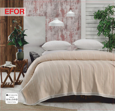 EforHome Покрывало EFOR (220*240) с кружевами персиковый