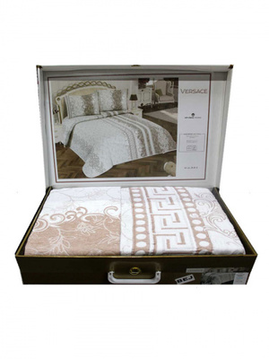 EforHome Покрывало EFOR гобеленовое двухстороннее VERSACE (240*260) c наволочками бежевый