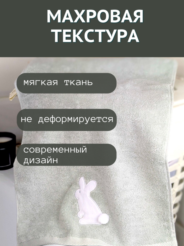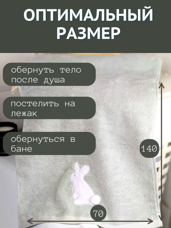 7Я текстиль Полотенце банное детское махровое 70х140 Зайчик 7Я 1506475-светло-оливковый