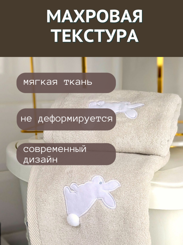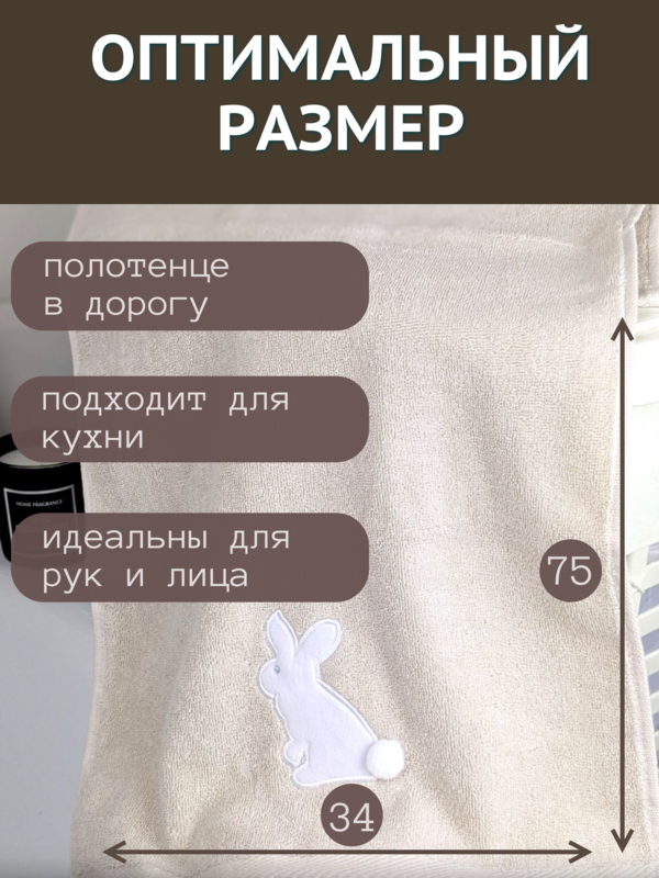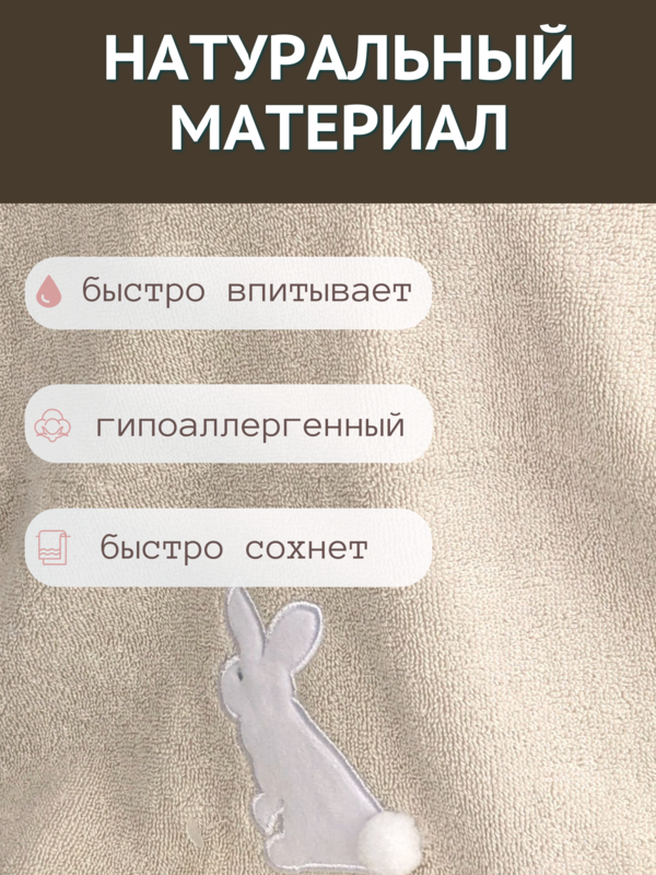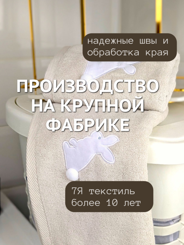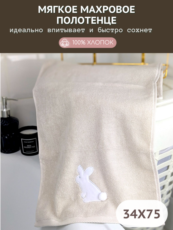 7Я текстиль Полотенце банное детское махровое 34х75 Зайчик 7Я 1504475-светло-бежевый