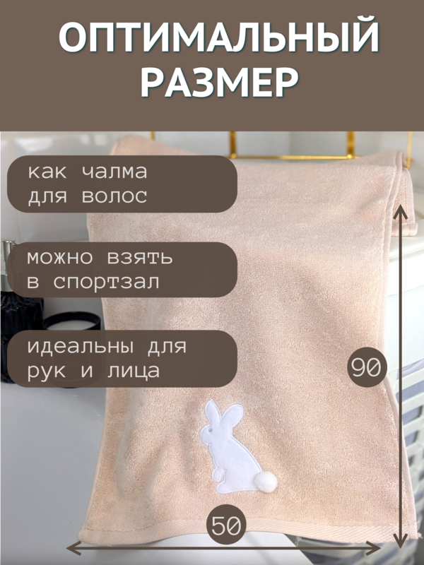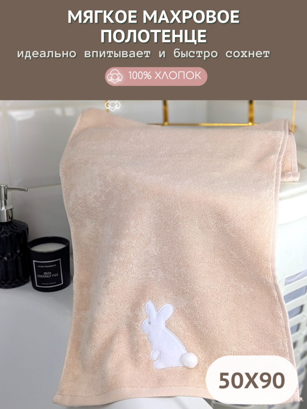 7Я текстиль Полотенце для лица и рук детское махровое 50х90 Зайчик 7Я 1505475-персиково-бежевый