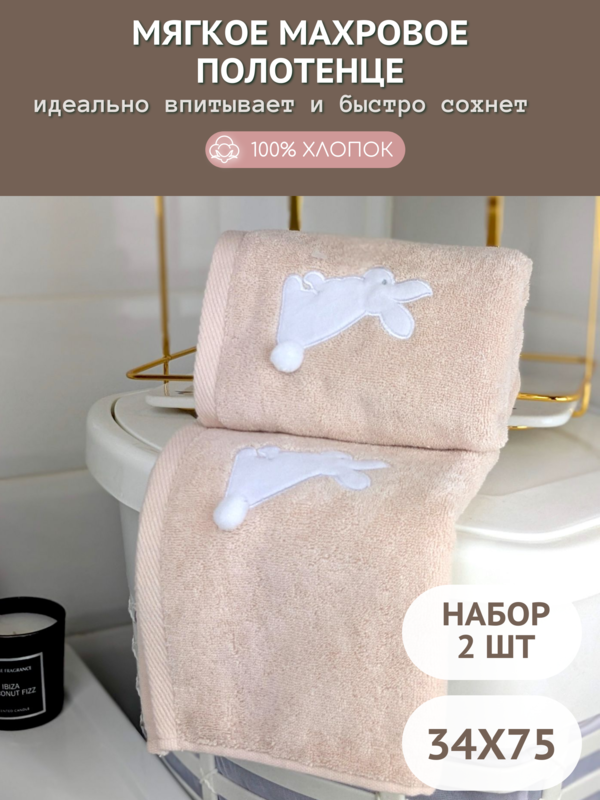 7Я текстиль Набор детских махровых полотенец для лица и рук 2 шт 34х75 Зайчик 7Я Н1504475-2-персиково-бежевый