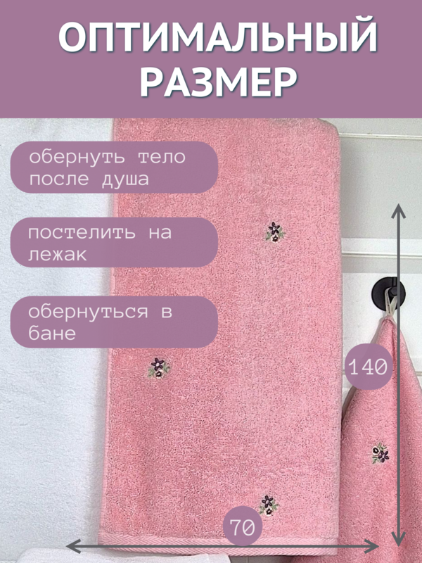 Отзывы - 7Я текстиль Полотенце махровое большое банное 7Я Текстиль 70х140 Мелкие цветочки 1506481-розовыйОставить отзыв