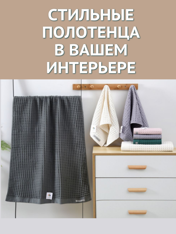 Полотенца вафельные ручные мягкие 7 атмосфера благополучия из 100% хлопка размером 34х75 для тех, кто любит легкие и быстросохнущие полотенца. Такие вафельные полотенца отлично подходят в ванную комнату для рук и лица. Полотенца вафельные для рук фабрики 7Я атмосфера благополучия – уникальная коллекция бренда. Плотный хлопок 100% вафельного полотна изготовлен по специальной запатентованной технологии. Текстиль "соты" вафельного полотенца для лица и рук на тренировке и бассейне сделаны более "пышным", что повышает его впитываемость и мягкость. 7 я полотенце ручное вафельное 34 на 75 подходит взрослым и детям. Легкое мягкое полотенце из вафельной ткани компактно помещается в рюкзак и быстро сохнет. Занимает очень мало места в скрученном состоянии. Вафельные полотенца 7 я очень удобно сложить в пляжную или спортивную сумку, не тяжелое в мокром состоянии. Фабрика 7Я текстиль производит полотенца с применением современных гипоаллергенных стойких красителей и закрепителей цвета, благодаря чему полотенца сохраняют цвет после многочисленных стирок. Полотенце 7ya textile с петелькой маленькое обязательно станет вашим любимчиком. Материал полотенец произведен из высококачественного хлопка, который проходит несколько стадий обработки по удалению мелких волокон, что позволяет получить мягкое и нежное вафельное полотно премиум качества. Маленький размер удобно использовать как для рук в ванной, так и взять с собой в баню. Такие подарочные полотенца для женщин станут отличным подарком для сестры. Вафельное полотенце 34*75 станет прекрасным подарком для мамы. Полотенца с однотонные для женщин и мужчин стирают при оптимальной температуре воды не выше 40 градусов и гладят при низкой температуре - до 110 градусов. У нас есть акции и распродажи, вы можете купить наши товары в подарок со скидкой. Красивые вафельные полотенца для лица и рук - прекрасный подарок на день рождения для сына или дочери. Подходит и для женщин на новоселье или 8 марта Приятных покупок.
