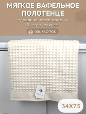 7Я текстиль Полотенце для рук вафельное 7Я "Крупные соты", 34х75 хлопок 100%, 1504301-кремовый