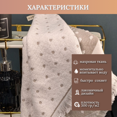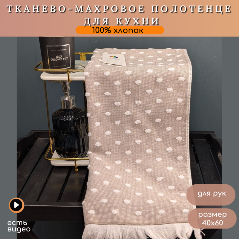 7Я текстиль Полотенце для кухни и рук 40х60 ткань/махра 100% хлопок 7Я Горохи 2211328-бежевый