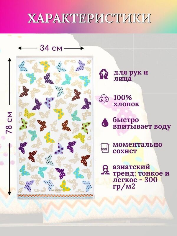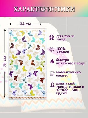 Отзывы - BOLANGDE Полотенце для лица, рук махровое 1 шт., для детей и взрослых, для семьи Япония Бабочки, белый/мятный/бежевый, размер 34х78Оставить отзыв