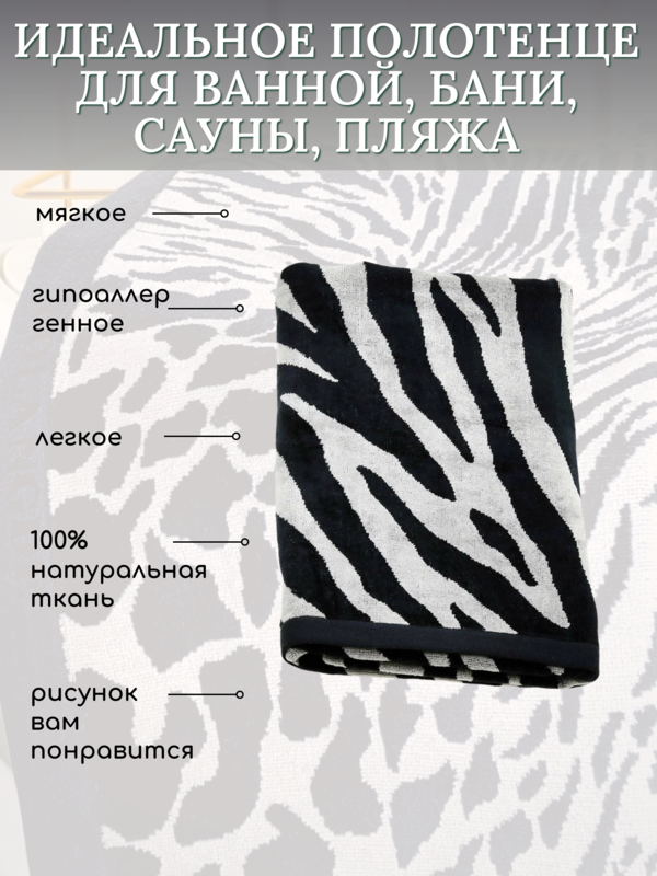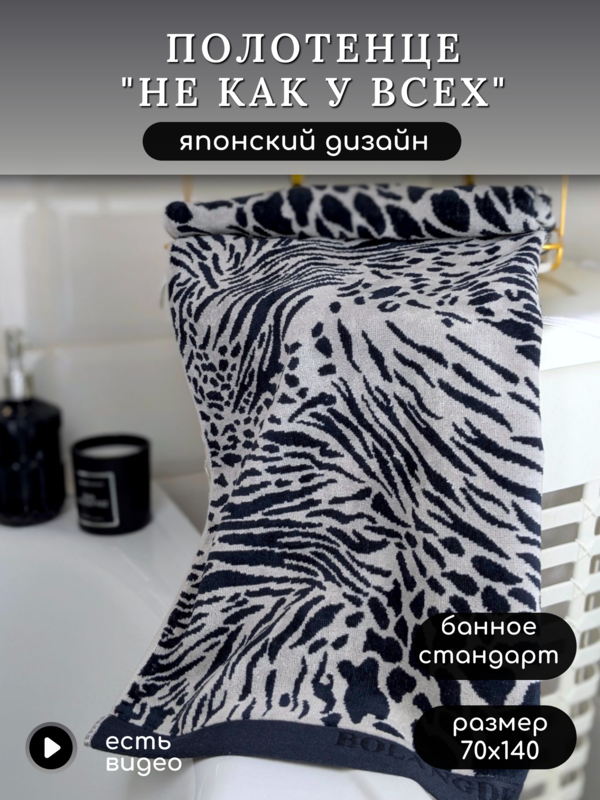 BOLANGDE Полотенце для ванной махровое банное большое, велюровое BOLANGDE, 100% хлопок, Япония 70х140, белый/черный 1 шт