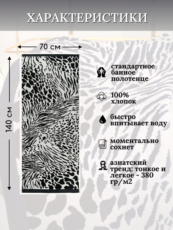 Махровое полотенце Bolangde 70 на 140 Япония 3023 с энималистичным рисунком - классический принт бренда, не теряющий популярность уже много лет. Уникальные технологии от японской фабрики KUSUBASHI Mon-OriCo позволили создать японское полотенце небольшое махровое для рук в ванную с запатентованным дизайном - махровое с одной стороны и велюр с другой. Это значит, что такой рисунок с животным принтом не могут использовать другие бренды, а вы покупаете неповторимую вещь, которая поможет создать уют в доме. Плотность текстиля - 380 гр/м2, это классические японские полотенчики, производимые на их фабрике на территории Китая. Полотенце мягкое, нежное, приятное на ощупь и очень красивое и тонкое. Полотенца для рук хлопок Bolangde в ванную красивые, тонкие, натуральные - идеальный вариант для повседневного использования. Отлично впитывают влагу и быстро сохнут. Технология производства подразумевает со стороны рисунка поверхностный обжиг огнем волокон для равномерной длины ворса и мягкости кончиков. Наши махровые полотенца из 100% хлопка, являются экологичными и гипоаллергенными. Маленький размер удобно использовать как для рук в ванной, так и взять с собой. Японские технологии дали возможность совместить пестротканое плетение и долговечность, что позволяет им не расползаться и сохранить прекрасный внешний вид даже после многочисленных стирок. Полотенца махровые с принтом животных стирают при оптимальной температуре воды не выше 40 градусов и гладят при низкой температуре - до 110 градусов. У нас есть акции и распродажи, вы можете купить наши товары в подарок со скидкой. Полотенце Bolangde прекрасный вариант в подарок на день рождения на дачу для себя любимой на любой повод или без повода просто так на 14 февраля - день влюбленных святого Валентина на новоселье в дом 8 марта для мамы сестры подруге или коллеге по работе. Приятных покупок.