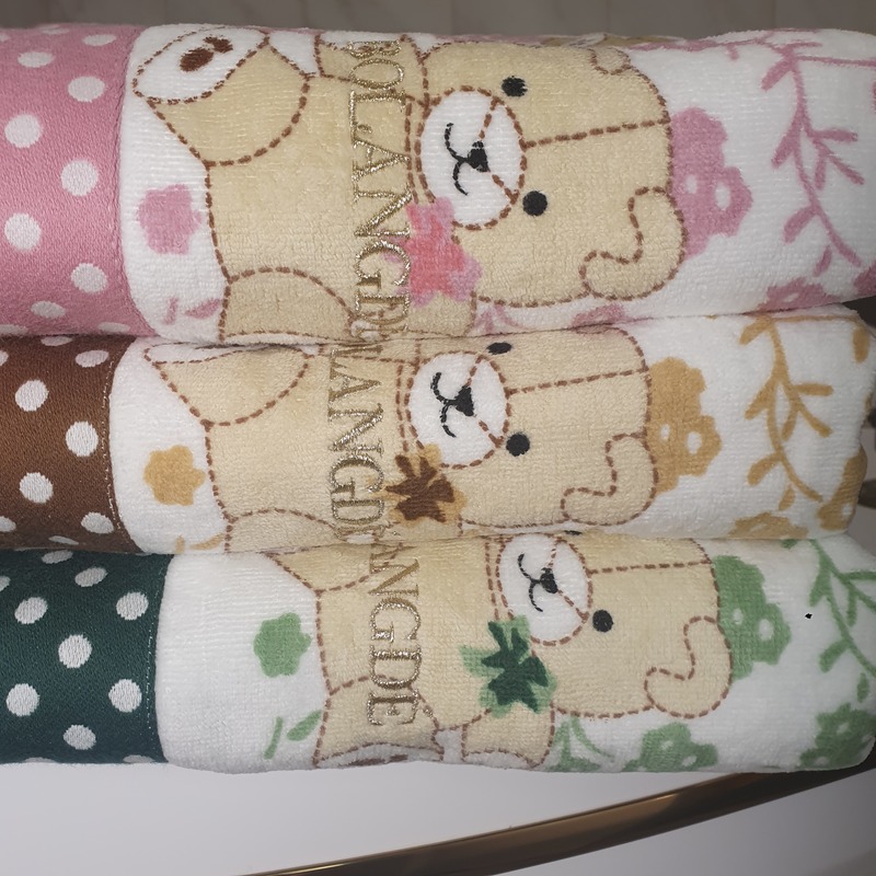 BOLANGDE Полотенце для рук, лица махровое/велюровое 50х90 для детей, для дома, для семьи Япония Мишки 2078B-белый/бежевый