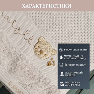 7Я текстиль Полотенце для ванной для лица и рук детское 7Я "Мишки вафельные" , вафельное полотно, хлопок 100%, 50х90 7Я 5105103