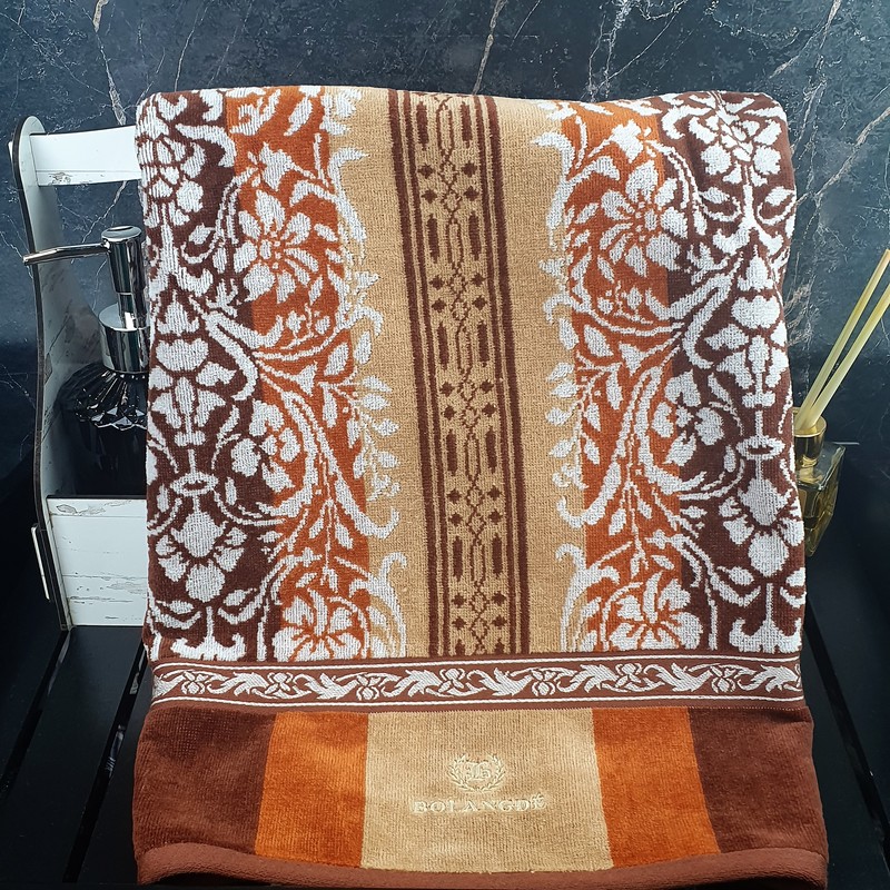 BOLANGDE Полотенце для ванной и сауны махровое банное большое, велюровое, 100% хлопок, Япония Арабеска 100х150, коричневый 1 шт