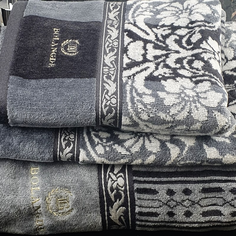 "Полотенца для ванной BOLANGDE Япония Арабеска 3025 - роскошная расцветка, которая подойдет как для классического интерьера, так и для современного. Уникальные полотенца BOLANGDE от японской фабрики KUSUBASHI Mon-OriCo с запатентованным дизайном - с одной стороны махровые и велюровые с другой. Полотенца выпускались и выпускаются на производственных мощностях KUSUBASHI Mon-OriCo под полным контролем и японского менеджмента, территориально завод размещен на территории КНР. Технология производства таких полотенец подразумевает со стороны рисунка поверхностный обжиг огнем верхней кромки волокон для равномерной длины ворса и мягкости кончиков. И чтобы рисунок лучше ложился и держался на протяжении всего времени использования, плотность полотенца должна быть 300 гр/м2. Они не относятся к разряду ""мохнатых"" махровых полотенец. Bolangde - особый продукт. Японские технологии позволили сделать полотенце тонким, крависым и долговечным, а отборный хлопок приятным и нежным. Все дизайны и технологии запатентованы фабрикой. Это значит, что такой рисунок не могут использовать другие бренды, а вы покупаете неповторимую оригинальную вещь. Коллекция махрово-велюровых полотенец ЯПОНИЯ торговой марки Bolangde (Боландже) произведена на японском оборудовании из 100% высококачественного хлопка с применением особо стойких японских красителей и закрепителей цвета, что позволяет использовать в одном изделии множество ярких цветов. Внутренняя сторона - махровая. Внешняя сторона - стриженная махра. В коллекции с цветами принтованная только внешняя сторона, внутренняя - гладкий белый хлопок. В геометричных рисунках и модели Арабеска обе стороны с рисунком, т.к. производятся путем жаккардового плетения уже готовых прокрашенных нитей. При производстве используются все последние Японские технологии, только натуральный хлопок и безвредные красители 4го уровня безопасности. Материал полотенец произведен из высококачественного хлопка, который проходит несколько стадий обработки по удалению мелких волокон, что позволяет получить мягкий и нежный ворс. Японские технологии дали возможность совместить пестротканое плетение, велюр, усиленную обшивку (оверлок), что позволяет им не расползаться и сохранить прекрасный внешний вид. Подобная технология производства позволяет получить: - мягкие и комфортные к телу полотенца; - прочную ткань, которая выдерживает многочисленные стирки; - стойкий цвет; - полотенца хорошо впитывают воду и при этом быстро сохнут. Каждая модель есть в четырех размерах, чтобы каждый мог выбрать полотенца согласно своим привычкам: · полотенца большие банные есть в двух размерах 70х140 и 100х150, чем может похвастаться не каждый бренд. Удобно использовать для ванной, для сауны и бани, а также как пляжное. · полотенце для лица махровое 50х90 · полотенце для рук, для ног 34х78 в наборе 2 шт. · идеально выглядит набор полотенец. Обычно покупают одно из банных и лицевое, или банное и для рук. Уже более ста лет, фабрика KUSUBASHI обеспечивает потребности трех поколений императорского двора Японии. Это существенный повод доверять качеству данной фабрики. Полотенца Bolangde с цветочным рисунком - прекрасные подарки женщинам: бабушке, девушке, подарок маме, учителю, воспитателю."