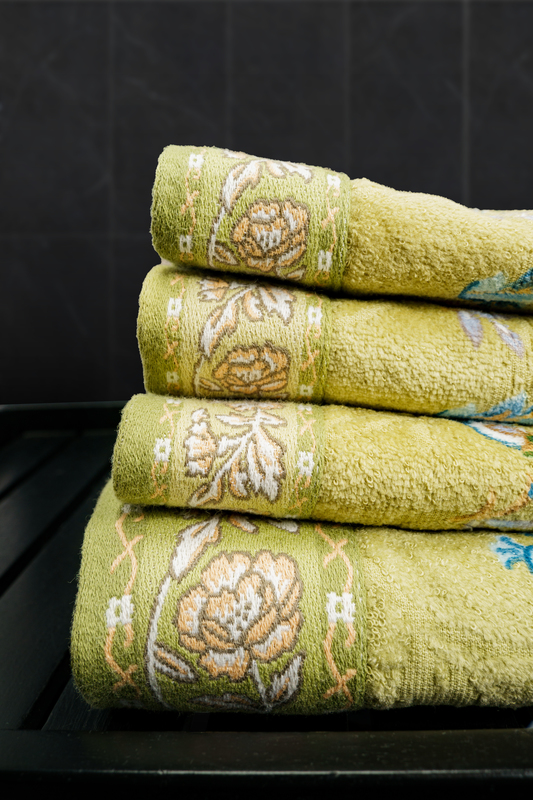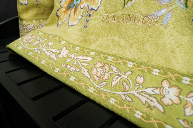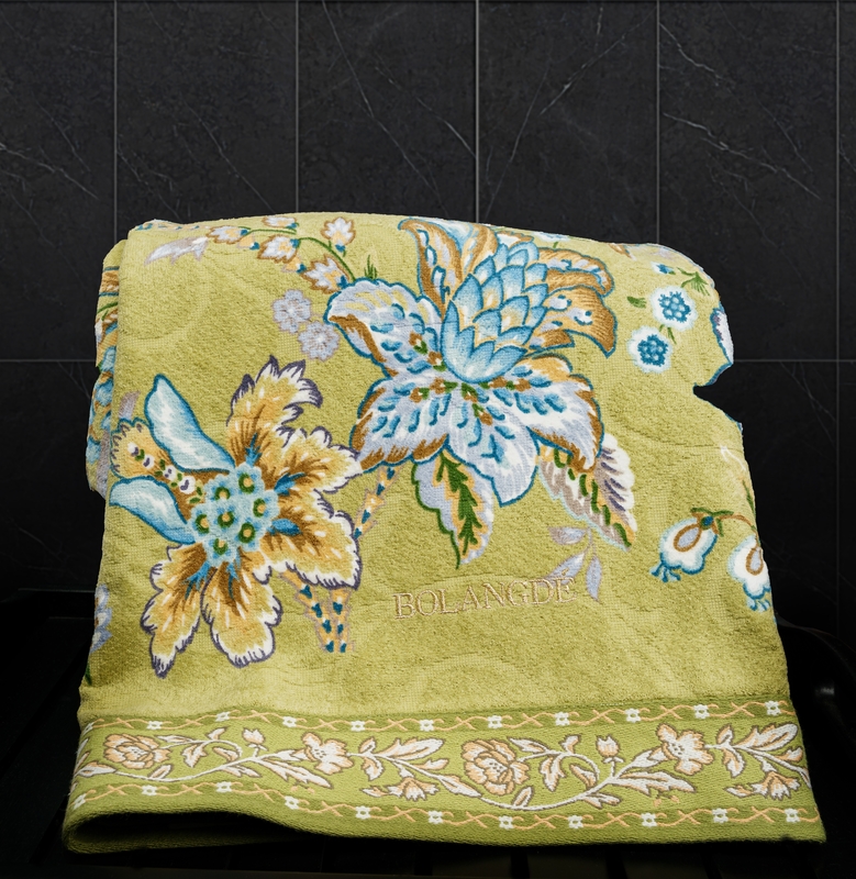 BOLANGDE Полотенце для ванной махровое банное большое, велюровое, 100% хлопок, рисунок цветы, Япония Узор 70х140, зелёный 1 шт