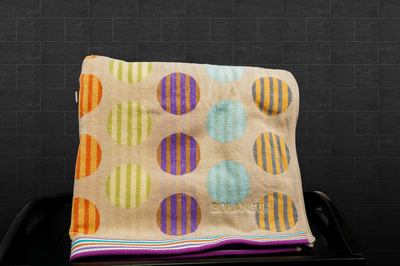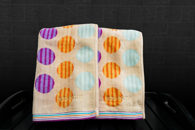 BOLANGDE Полотенце для ванной махровое банное большое, велюровое, 100% хлопок, Япония Круги 70х140, мультиколор 1 шт.