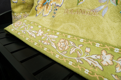 "Интересная модель Узор на плотном зелёном или бордовом фоне - одна из самых любимых моделей полотенец BOLANGDE Япония 2032. Брендированная вышивка золотыми нитями, жаккардовый бордюр делают эти полотенца настоящим украшением вашей ванной комнаты. Уникальные полотенца BOLANGDE от японской фабрики KUSUBASHI с запатентованным дизайном. Это значит, что такой рисунок не могут использовать другие бренды, а вы покупаете неповторимую оригинальную вещь. Коллекция махрово-велюровых полотенец для ванной ЯПОНИЯ торговой марки Bolangde (Боландже) произведена на японском оборудовании из 100% высококачественного хлопка с применением особо стойких японских красителей и закрепителей цвета, что позволяет использовать в одном изделии множество ярких цветов. Махрово-велюровое полотенце произведено на японском оборудовании. Внутренняя сторона - махра. Внешняя сторона - стриженная махра. В коллекции с цветами и Мишками принтованная только внешняя сторона, внутренняя - гладкий белый хлопок. При производстве используются все последние Японские технологии, только натуральный хлопок и безвредные красители 4го уровня безопасности. Материал полотенец произведен из высококачественного хлопка, который проходит несколько стадий обработки по удалению мелких волокон, что позволяет получить мягкий и нежный ворс. Японские технологии дали возможность совместить пестротканое плетение, велюр, усиленную обшивку (оверлок), что позволяет им не расползаться и сохранить прекрасный внешний вид.. Подобная технология производстсва позволяет получить: - мягкие и комфортные к телу полотенца, - прочную ткань, которая выдерживает многочисленные стирки - стойкий цвет. - полотенца хорошо впитывают воду и при этом быстро сохнут. Каждая модель есть в четырех размерах, чтобы каждый мог выбрать полотенца согласно своим привычкам: полотенце 34х75 для рук полотенце 50х90 для лица полотенце 70х140 банное полотенце 100х150 для сауны, бани, пляжа, ванной. Уже более ста лет, фабрика KUSUBASHI обеспечивает потребности трех поколений императорского двора Японии. Это существенный повод доверять качеству данной фабрики. * Вы также можете найти данную модель по запросам: полотенца банные; полотенца для ванной; полотенца махровые; японские полотенца; подарочные полотенца для мужчин и женщин; полотенце для лица; полотенце для рук; подарки женщинам; подарок маме, дочери, бабушке, жене, ребенку, мужчине; полотенце Bolangde; полотенца из хлопка; тонкие полотенца. "