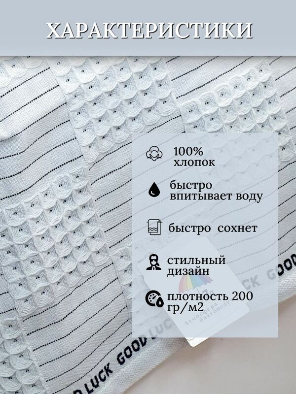Бренд - 7Я, Страна производства - Китай,Ткань - вафельное полотно, Состав - 100% хлопок, Плотность - 200 гр/м2