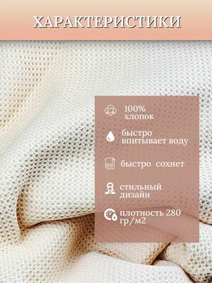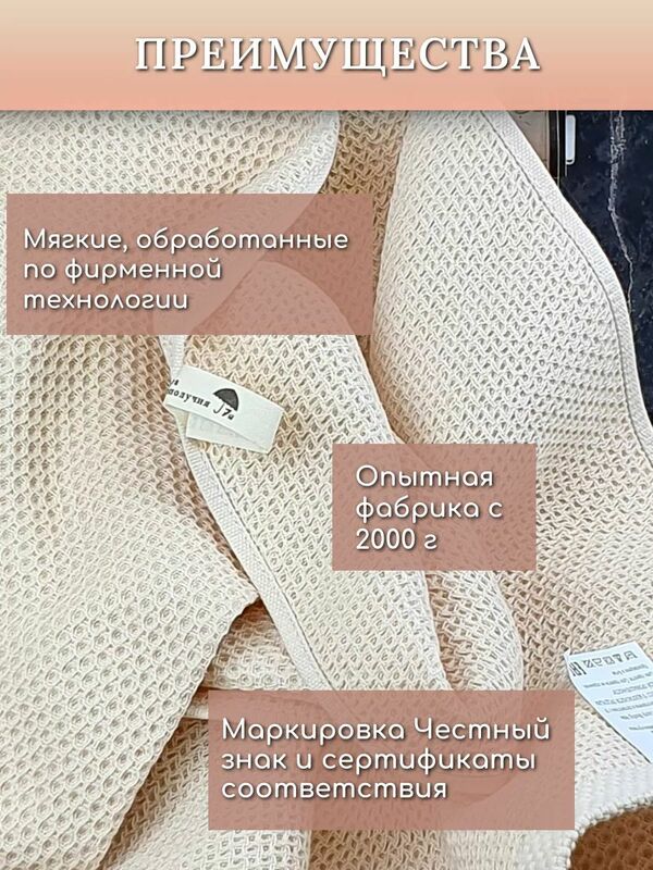 - Основная ткань - вафельная структура, хлопок 100%.