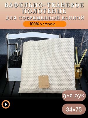 Отзывы - 7Я текстиль Полотенце для рук и лица для ванной, пляжное вафельное 34х75, хлопок 100%, светло-бежевыйОставить отзыв