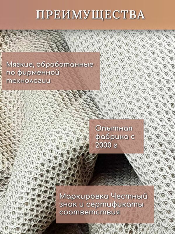 Бренд - 7Я, Страна производства - Китай,Ткань - вафельное полотно, Состав - 100% хлопок, Плотность - 280 гр/м2