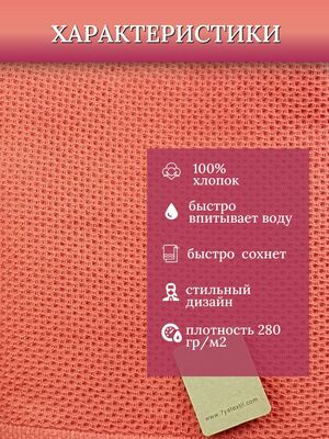 Бренд - 7Я, Страна производства - Китай,Ткань - вафельное полотно, Состав - 100% хлопок, Плотность - 280 гр/м2