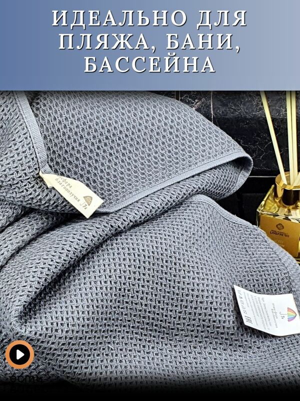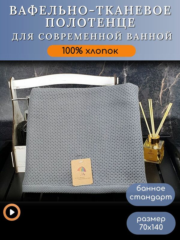 Отзывы - 7Я текстиль Полотенце для ванной, пляжное вафельное 70х140, хлопок 100%, темно-серыйОставить отзыв