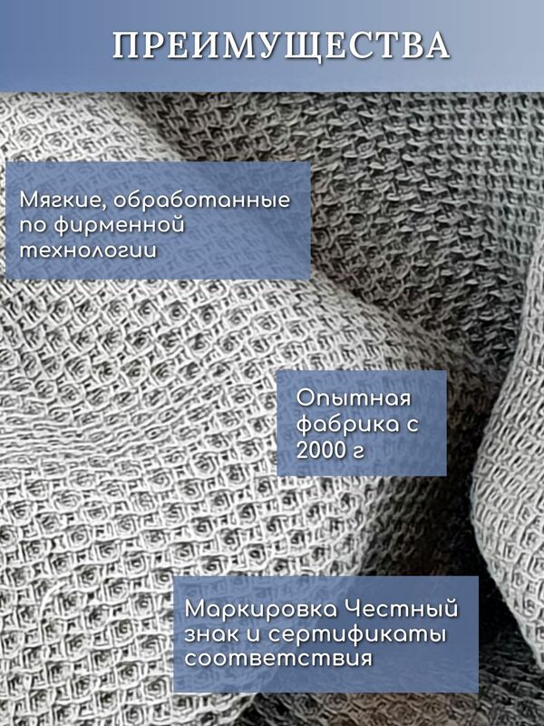 Бренд - 7Я, Страна производства - Китай,Ткань - вафельное полотно, Состав - 100% хлопок, Плотность - 280 гр/м2