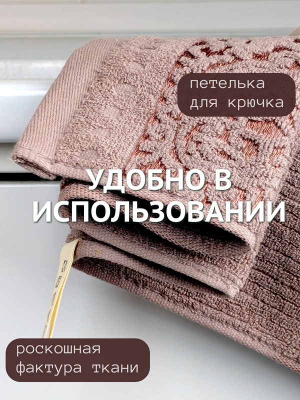 Махровое ручное полотенце с петелькой 34х75 является красивой с фактурными вензелями моделью натуральных хлопковых изделий бренда 7Я Атмосфера благополучия.