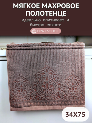 7Я текстиль Полотенце махровое банное 7Я Текстиль 100% хлопок 34х75 Вензель 2204421-коричневый