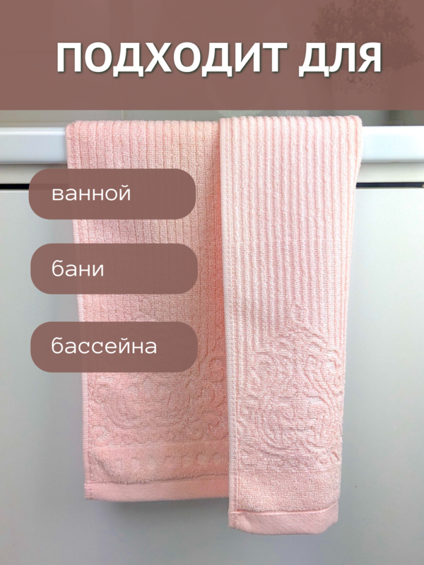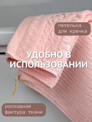Махровое ручное полотенце с петелькой 34х75 является красивой с фактурными вензелями моделью натуральных хлопковых изделий бренда 7Я Атмосфера благополучия.