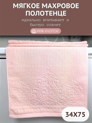 7Я текстиль Полотенце махровое банное 7Я Текстиль 100% хлопок 34х75 Вензель 2204421-персиковый